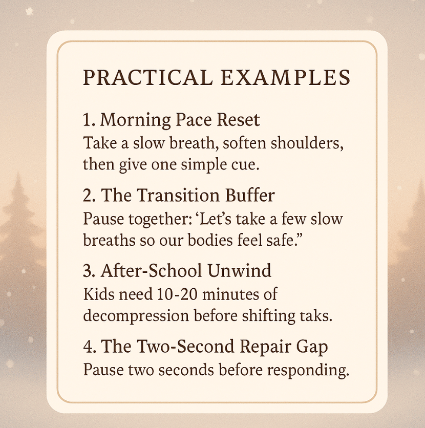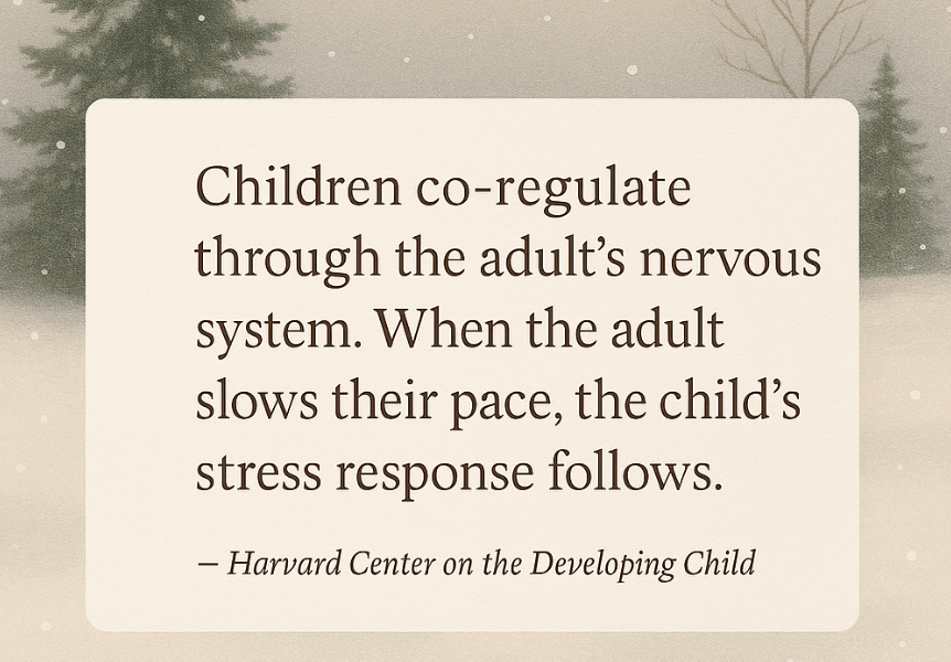 But when life speeds up, kids don’t automatically speed with us. They actually need the opposite: slower rhythms, softer transitions, and steadier adults.