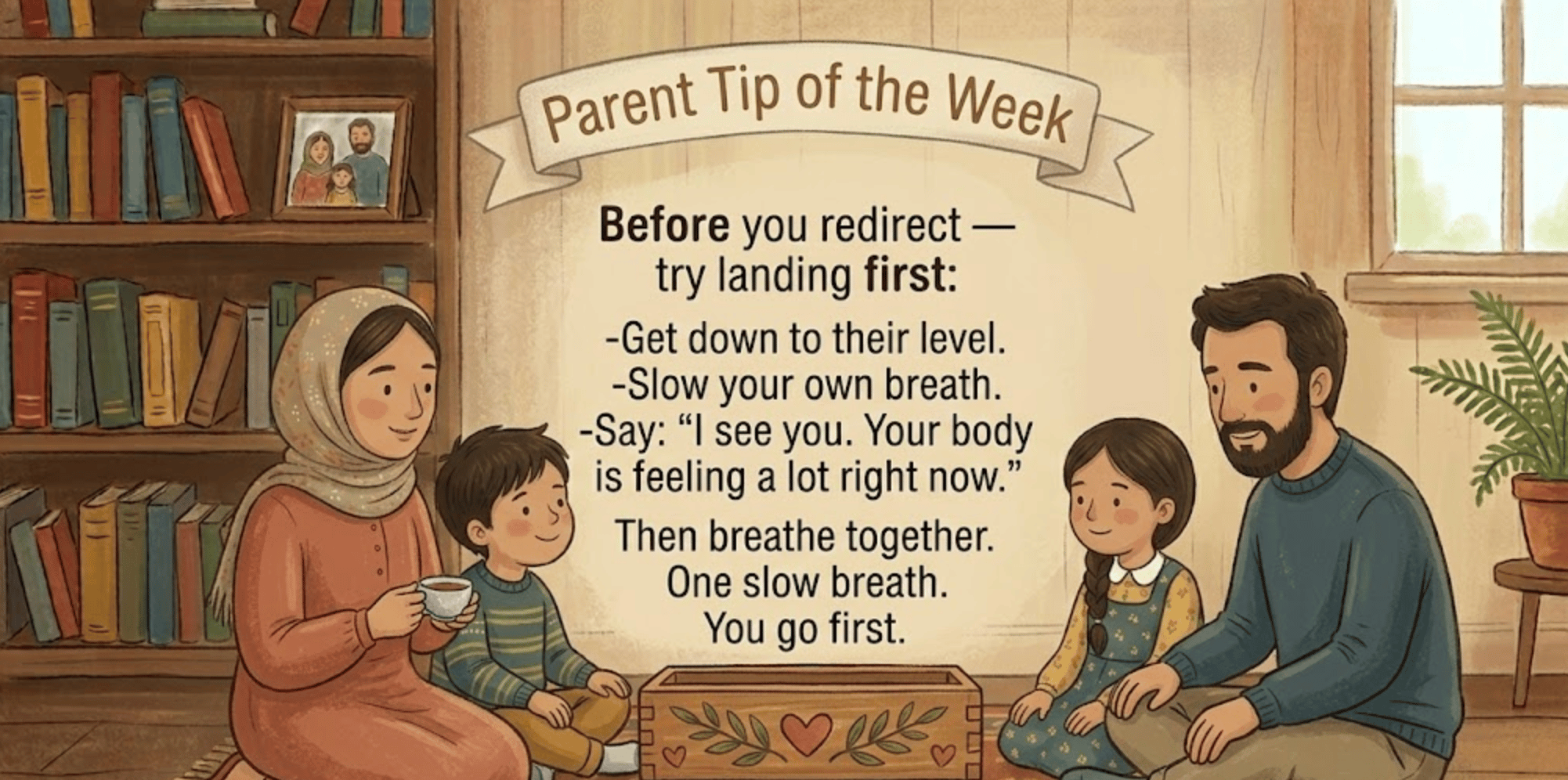 Get down to their level. Slow your own breath. Say: "I see you. Your body is feeling a lot right now."